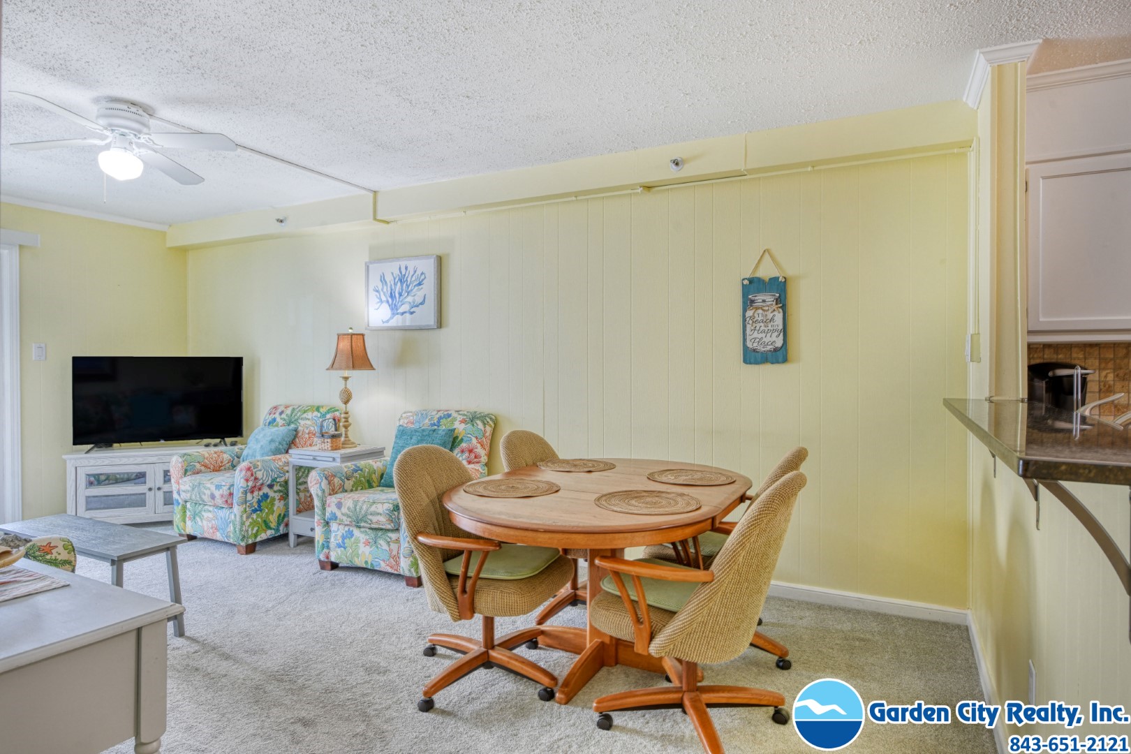 People at Garden city realty are great to work with. We come back for years. This year we locked our self's out. Johnny was there in less than a 1/2 hour to get us in. I think the place does need a new chair and the kitchen chair's are pretty wobby. I know it's one of the cheaper places that's why we stay there.