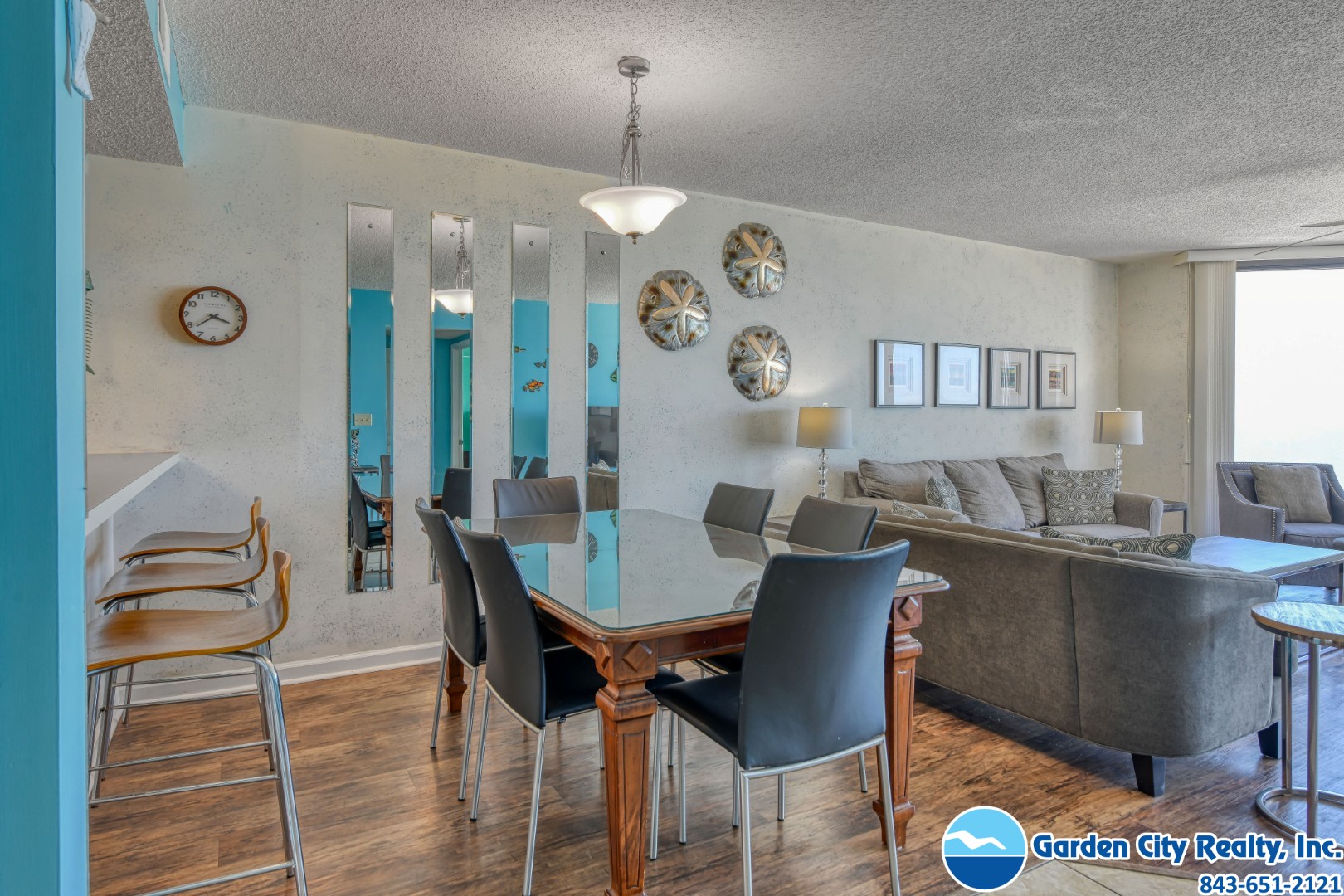 Our experience with Garden City Realty was a very nice one. Robin was very helpful on the phone when we called to rent the condo. The check-in process went very smoothly. At check-out no one was at the office at 8:30 and we felt a little uncomfortable leaving the keys in the key drop. We are seniors and like to do things face to face.