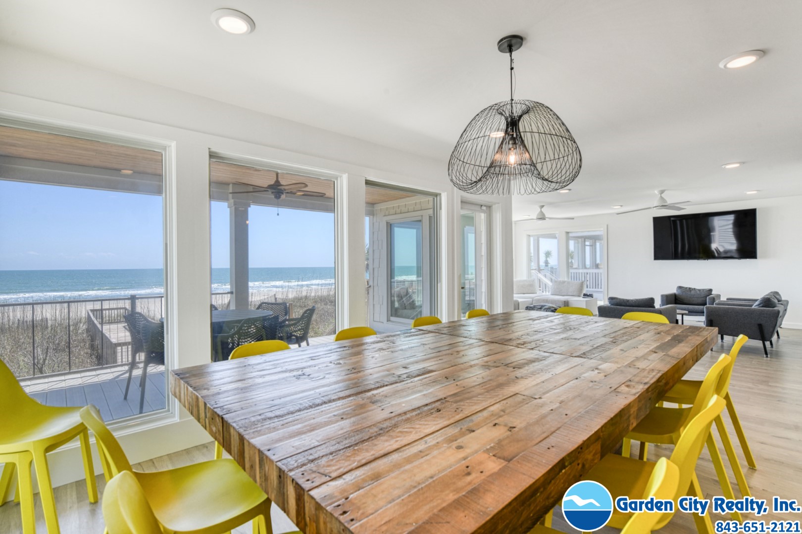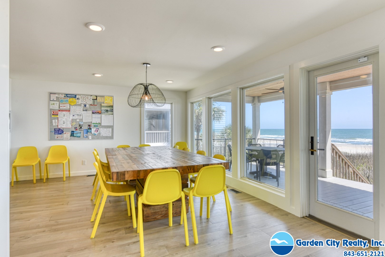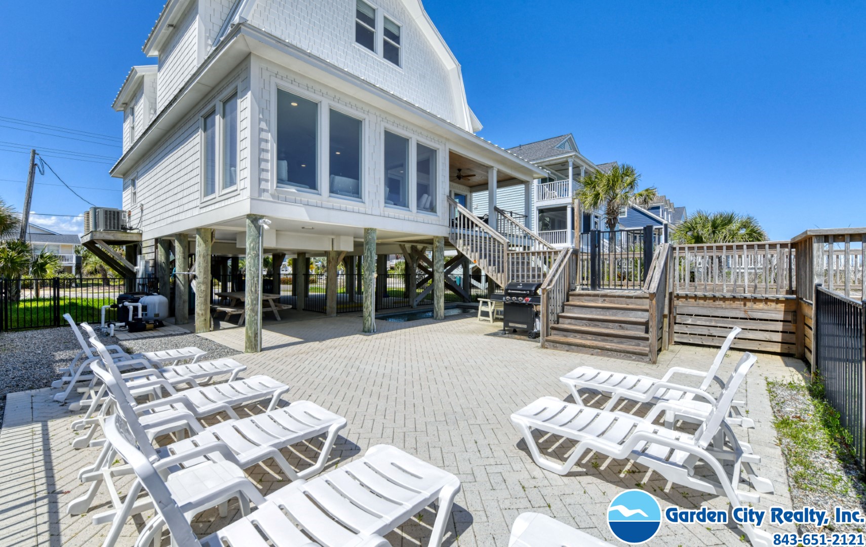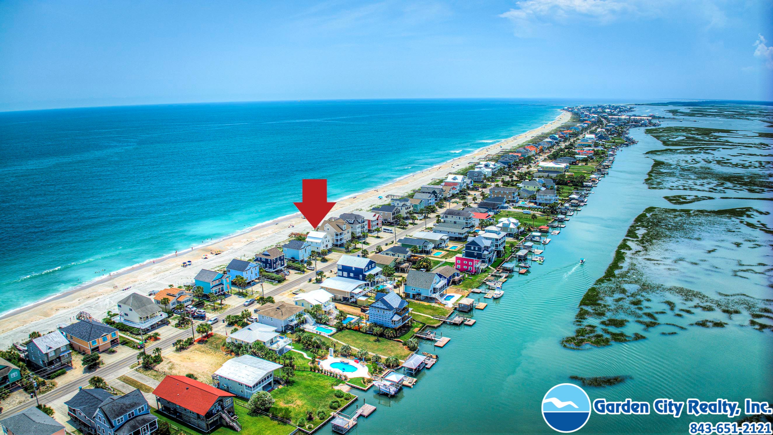 Seacamp is a stunning oceanfront "barn-style" beach house designed specifically for large families to gather and relax without a care. Located just a mile south of the Garden City Pier, this six-bedroom gem offers a spacious, open floor plan that makes it easy for everyone to find their favorite spot, whether it's around the massive 16-person dining table or in the light-filled living room overlooking the Atlantic. The home is built for effortless vacationing, featuring a high-capacity kitchen with double ovens and two refrigerators, as well as plenty of storage to help your group unpack and start enjoying the beach immediately. Outside, you can spend your days lounging by your private pool, grilling on the sundeck, or taking your own private walkway directly onto the sand. With beautiful views of both the ocean and the inlet, Seacamp provides the perfect, simple backdrop for making lifelong memories by the sea.