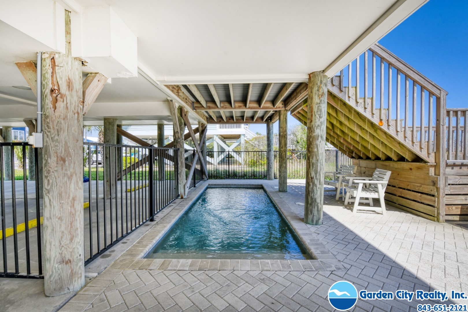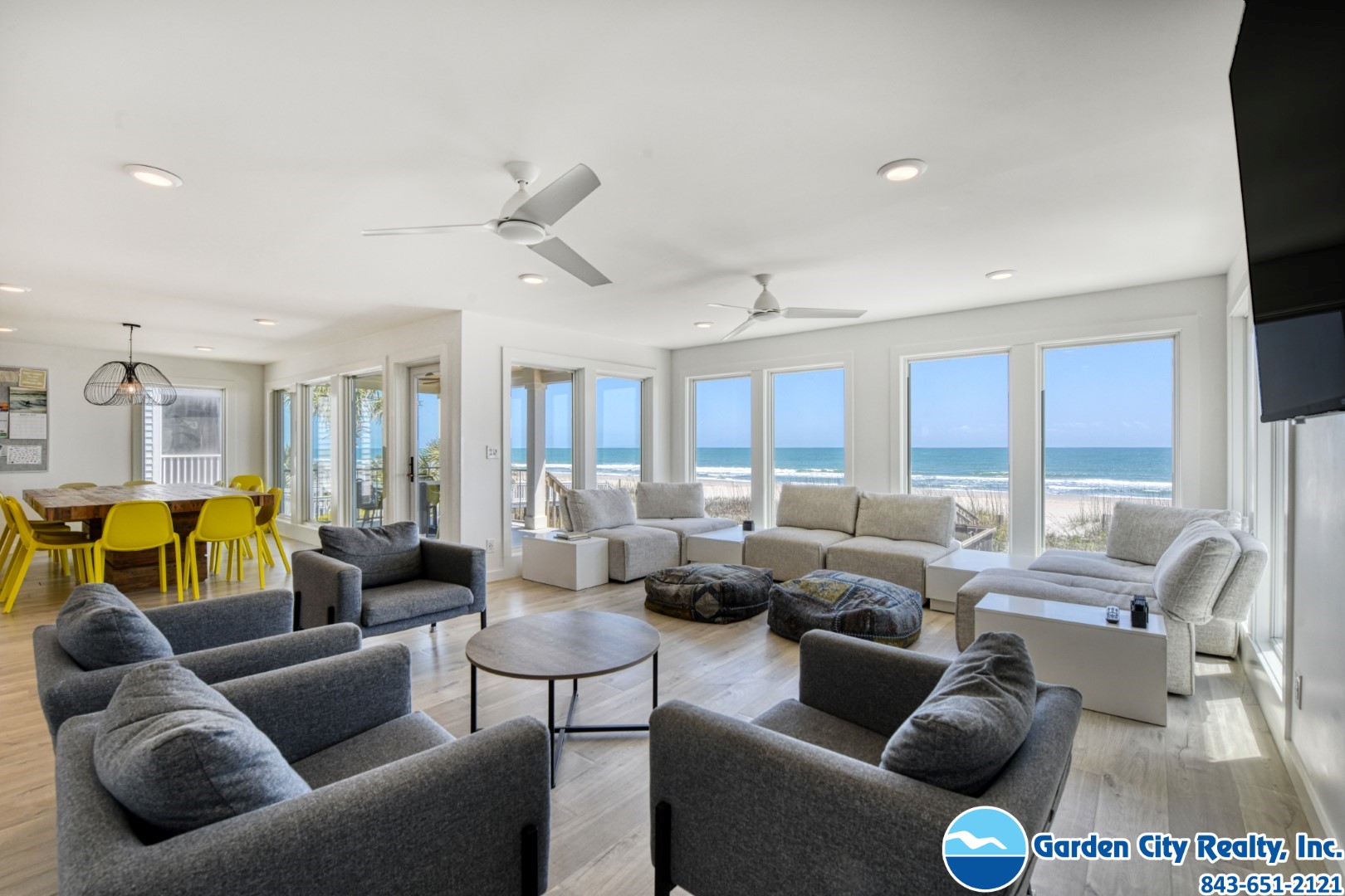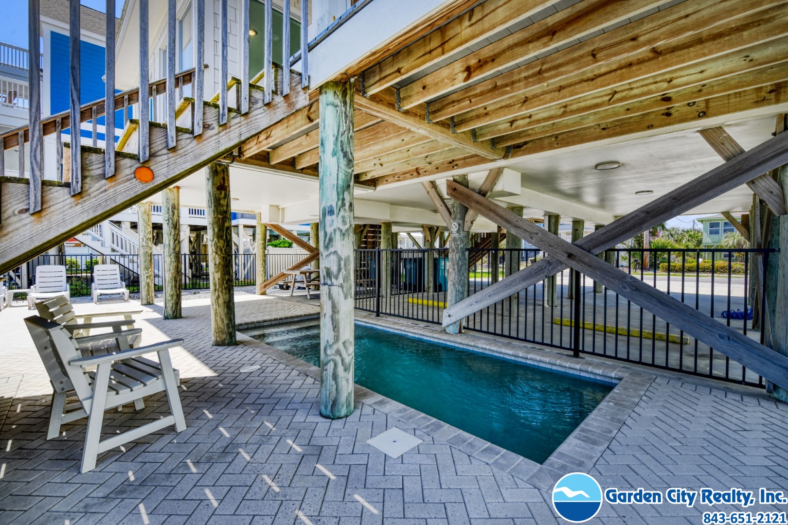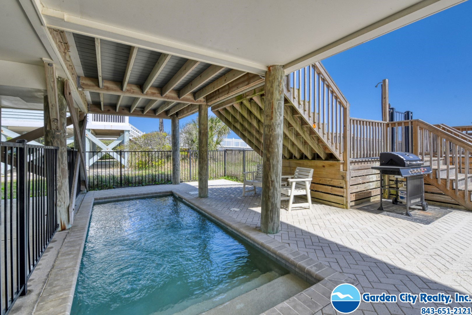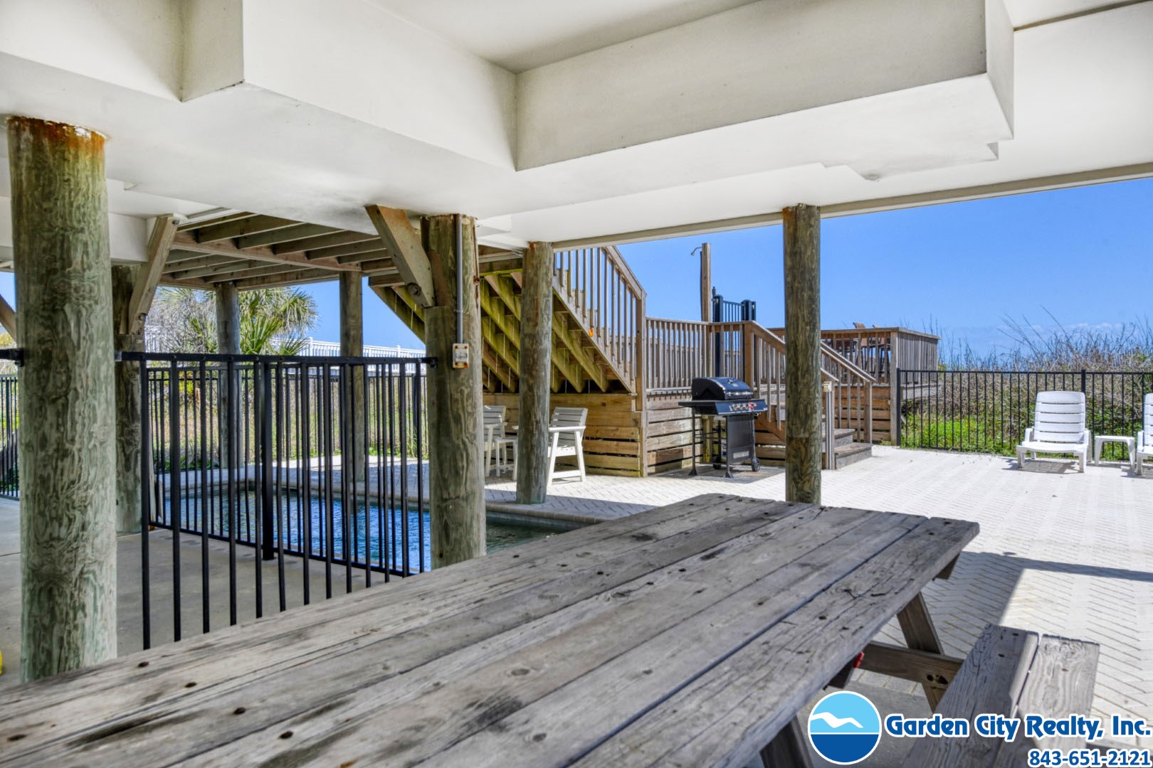 Seacamp is a stunning oceanfront "barn-style" beach house designed specifically for large families to gather and relax without a care. Located just a mile south of the Garden City Pier, this six-bedroom gem offers a spacious, open floor plan that makes it easy for everyone to find their favorite spot, whether it's around the massive 16-person dining table or in the light-filled living room overlooking the Atlantic. The home is built for effortless vacationing, featuring a high-capacity kitchen with double ovens and two refrigerators, as well as plenty of storage to help your group unpack and start enjoying the beach immediately. Outside, you can spend your days lounging by your private pool, grilling on the sundeck, or taking your own private walkway directly onto the sand. With beautiful views of both the ocean and the inlet, Seacamp provides the perfect, simple backdrop for making lifelong memories by the sea.