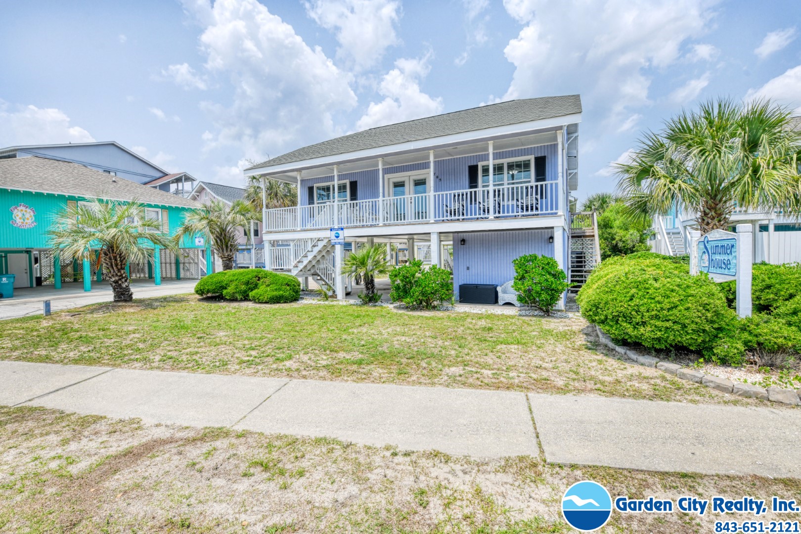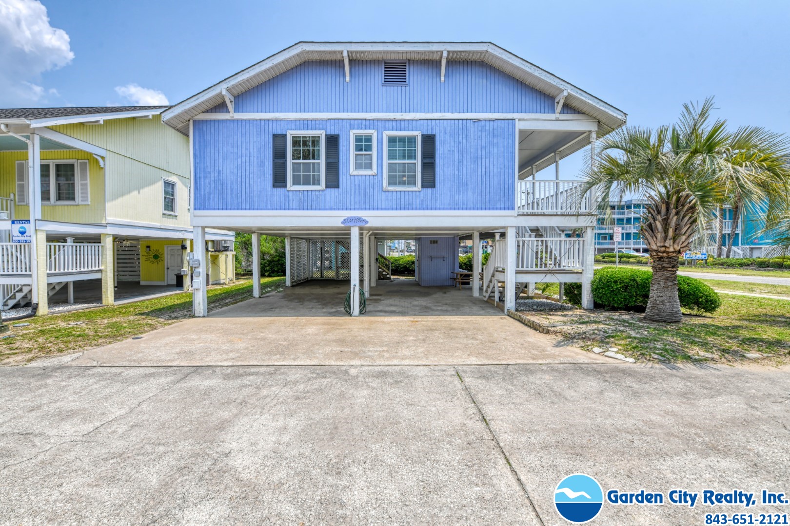 Star Haven is a three-bedroom, two-bath ocean view home located 0.4 miles north of Garden City Pier in the second row community, Summer House. The home features a fully-equipped kitchen complete with stainless steel appliances including a microwave and dishwasher, as well as a washer, dryer, central heat and air conditioning, and ceiling fans. Two TVs, DVD player, and Wi-Fi are also provided. Sleeping accommodations include one king, one queen, and two twin-sized beds plus a queen-size sleeper sofa. Outdoor amenities include a covered porch and shower. Ample parking (two-to-four covered spots). Dog friendly. Limit two dogs - 70-pound maximum weight limit if bringing one dog, 50-pound maximum weight limit per dog if bringing two. Please see the office for