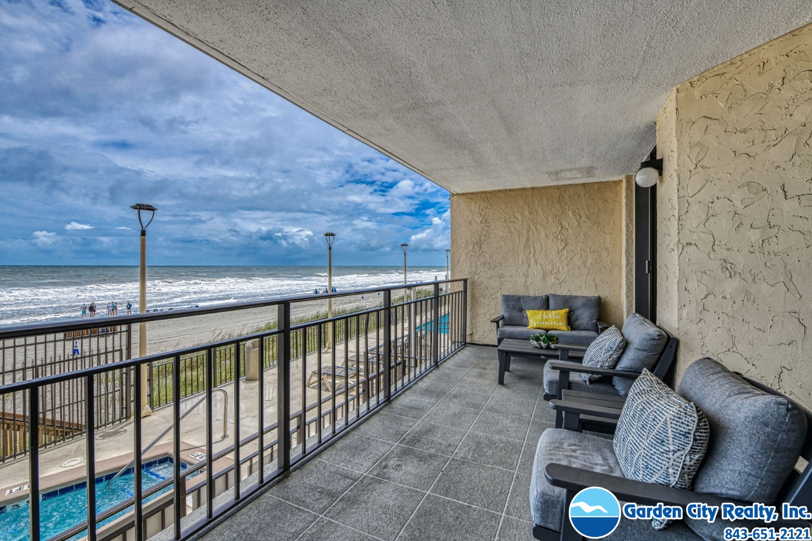 This place is an excellent place to spend your vacation! It is exactly as described by garden city realty. Beautiful oceanfront room with comfortable bed and furniture! Fully stocked kitchen with all the appliances large and small you would need ! The balcony Is huge and the access to the beach and pool is very simple. We will be visiting again. On a side note - parking can be tough , we had a parking pass and on 2 seperate occasions had to park away from the building. Once we parked in front of the building which was ok other than they have small wooden post alongside the parking spots and in a taller SUV I was unable to see one of the post on my passenger side and severely damages the side of my car trying to pull out of the spot the next day Just be careful for this !
