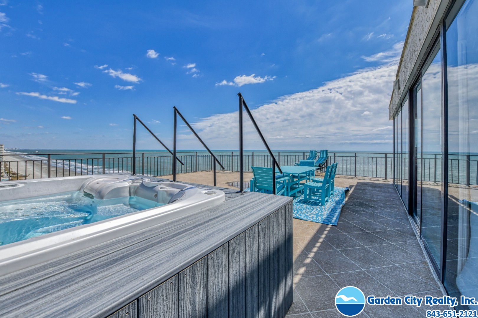 Surf Master by the Sea Penthouse B is a three-bedroom, three-bath oceanfront condo located 1.2 miles north of Garden City Pier. This penthouse is located on the 11th floor of the North Tower, and features a fully-equipped kitchen complete with dishwasher and microwave, washer, dryer, and new central heat and air conditioning. Three Smart TVs (Roku in the living room) and Wi-Fi are also included. Sleeping accommodations include one king and two twin-sized beds, plus a queen sofa bed. This unit features a furnished oceanfront balcony with a private hot tub. Common area features two elevators in both towers, two oceanfront swimming pools and hot tubs, ample parking, (some covered) 7-foot clearance. Parking spaces are limited and availability is based on the size of each unit. One bedroom units are assigned one pass; two and three bedroom units are assigned two passes. Vehicles not displaying a parking pass on the rear view mirror or in a prominent area on the dashboard are subject to immediate towing per the Surf Master HOA. Additional parking passes are not available for other guests or visitors of guests. Monthly rentals only, May through October. No smoking. No pets. Maximum occupancy: 6