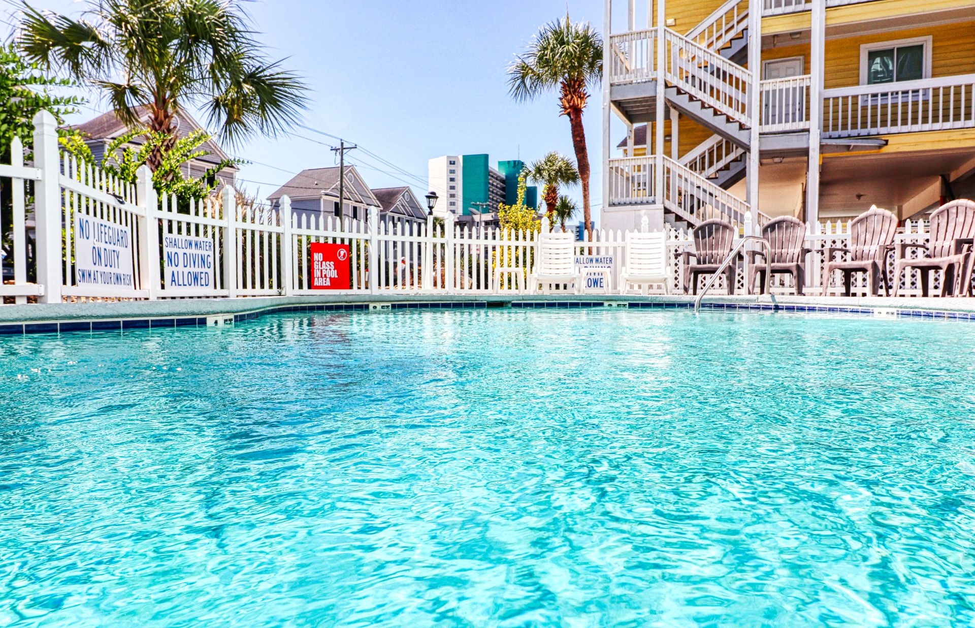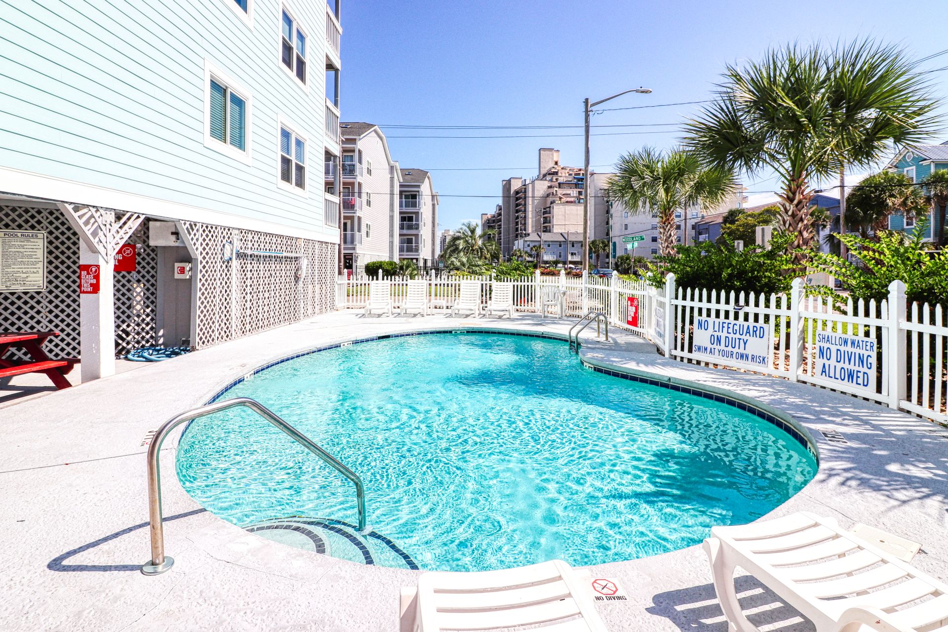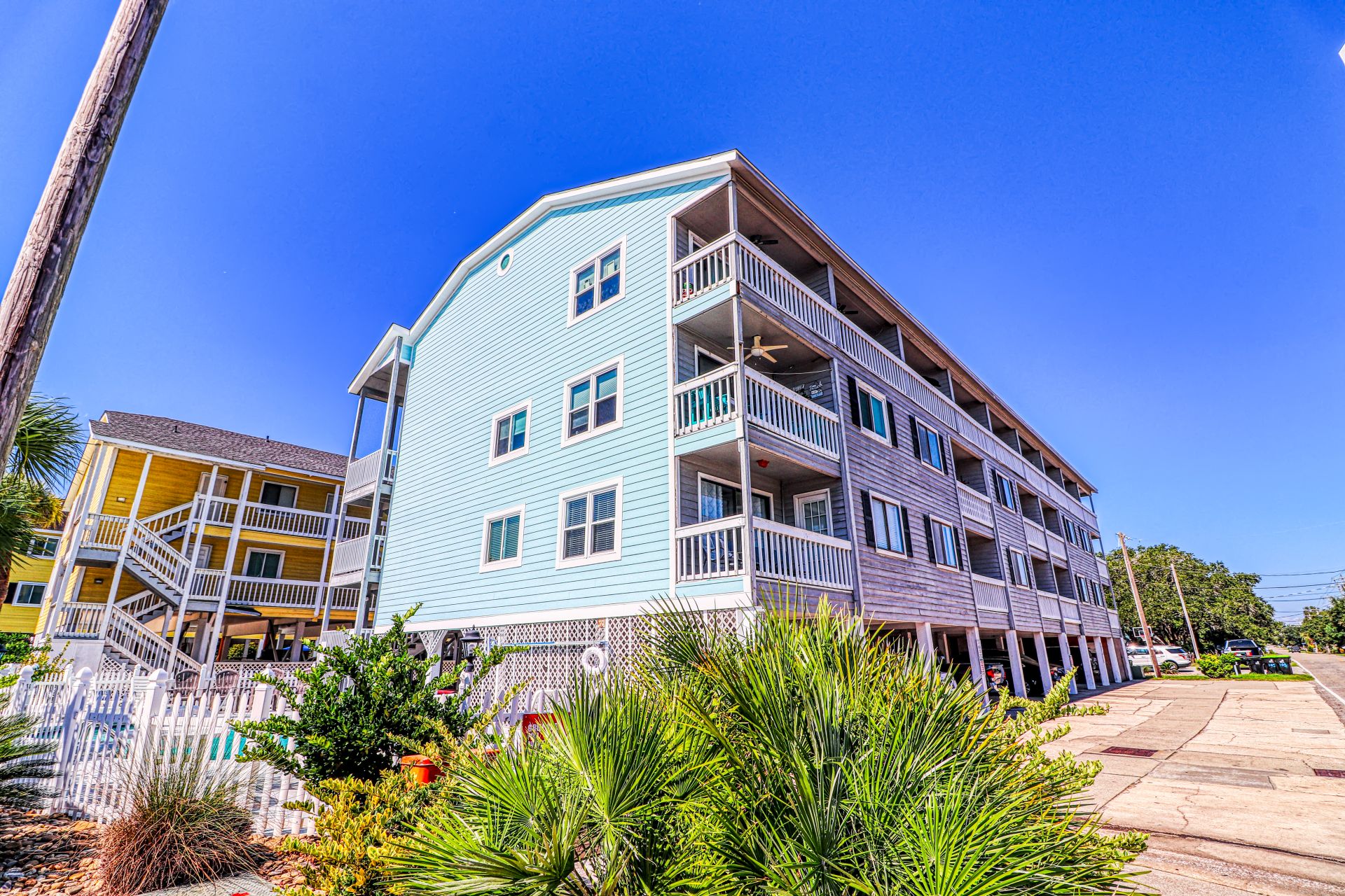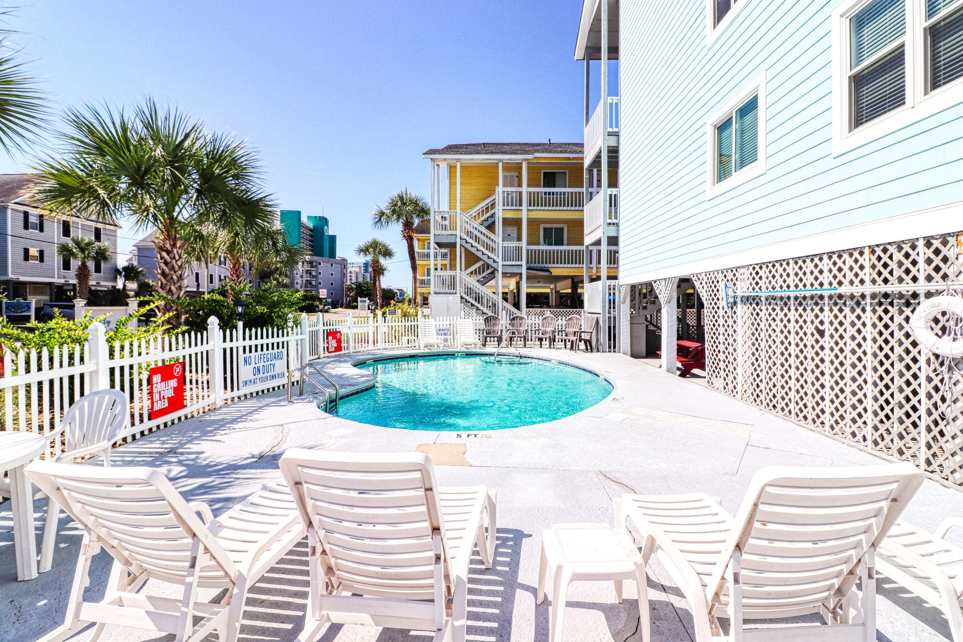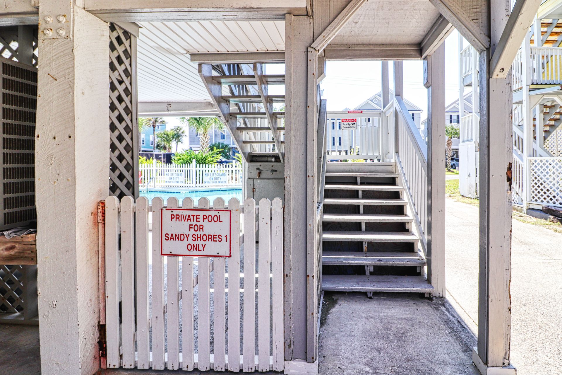 Sandy Shores I is a second-row complex comprised of two-to-three-bedroom condo suites located 0.8 miles north of the Garden City Pier. Standard unit features include a fully-equipped kitchen, central heat and air conditioning, and balcony, and ocean views. Other interior features and amenities vary per unit. Complex amenities include a full-sized swimming pool, outdoor shower, and professionally landscaped grounds. Limit one parking pass per unit. No elevator. No golf carts. No trailers. No smoking. No pets. Check-out maid service included.